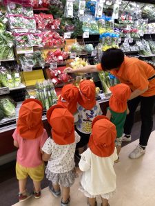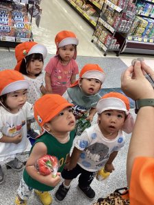 ピーマン🫑とパプリカを買いに隣の丸善さんにみんなでお買い物に行きました。行く前に園長先生に元気に『行ってきまーす。』とご挨拶😄
