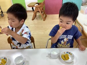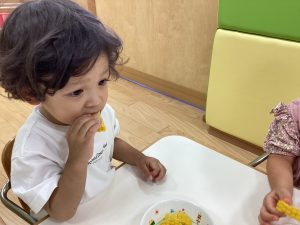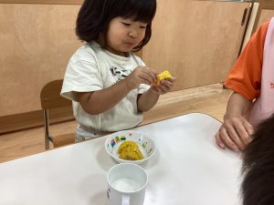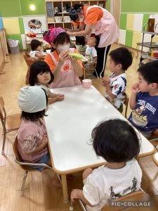 甘くてとっても美味しかったです。来週はもも組さんといちご組さんの食育活動をする予定ですので、次回のブログもお楽しみに!
