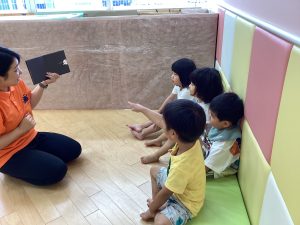 こんにちは😃サンライズキッズ保育園野洲園です。今週の絵本の読み合いの様子をお伝えします。