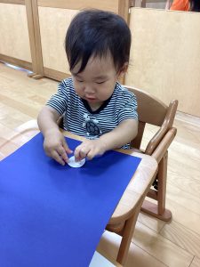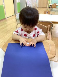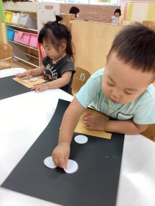 みんなとっても上手に貼れたね😊一人ひとりいろんな貼り方があり、素敵な作品が出来ました。