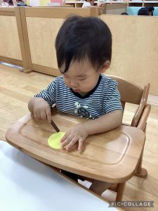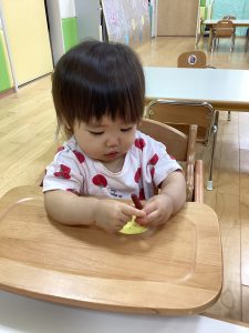 たくさん遊んだ後、お部屋に戻って朝のおやつタイム😊みんな、たくさん身体を動かしたので、喉も渇いていたんでしょうね。牛乳やお茶をたくさん飲んでいました😊
