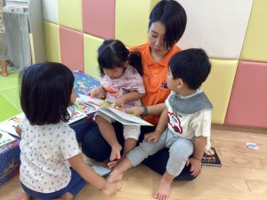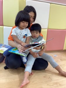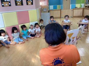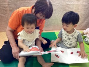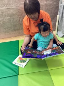 絵本を読みながら、子どもたちの反応も楽しんでいます。