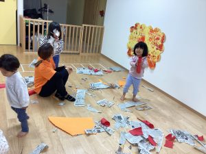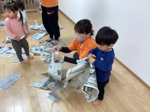 ビリビリたくさん新聞破って遊ぼう!