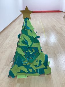 せっかく素敵なオーナメントをいただいたので、みんなでツリー🌲に飾り付けしたいけど、野洲園にはクリスマスツリーが無いので、段ボールで作りました。