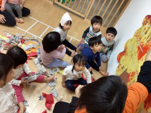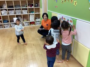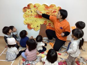 サンライズキッズ保育園野洲園です。日が暮れるのが一段と早くなり、朝晩の冷え込みに晩秋を感じます。今月は戸外に出る機会も多く、公園の落ち葉が赤や黄、オレンジへと変化するのを子どもたちと一緒に楽しんでいます。今週で11月も終わりですね。一ヵ月が過ぎるのが本当に早く感じます。来週は親子発表会もあります。子どもたちと一緒に楽しんでもらえたらと思います😊