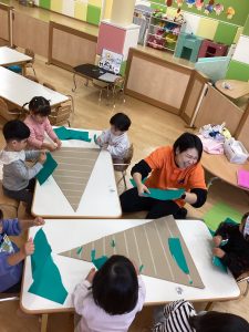 星⭐️をつけてツリー🎄になりました。また、来週にみんなで飾り付けをしたいと思います。