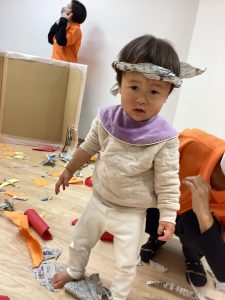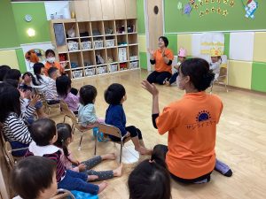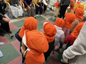 最後に、お芋掘りの時にお世話になった『ディサービスほほえみプラス』さんのところにいき、お芋掘りのお礼をしに行ってきました。この日は、利用者の方もたくさん居ましたが、みんなで元気に♪こぎつね♪の歌を歌い、利用者の方たちと一緒に♪やきいもグーチーパー♪をして楽しみました。もも組、いちご組さんは少し緊張した表情のお友だちもいましたが、りんご組さんはずっとニコニコ笑顔で利用者さんたちとタッチしていました😊