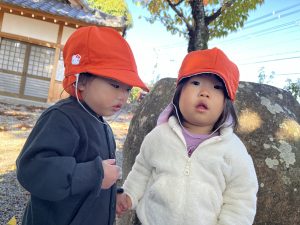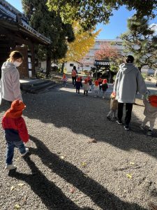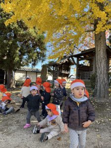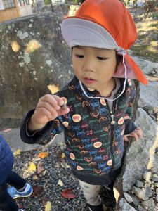 帰りに近くの神社(圓光寺)にお邪魔して、小さなどんぐりをたくさん見つけました。どんぐりを見つけると、両手いっぱいにどんぐりを持ってるお友だちもいましたよ(笑)😆