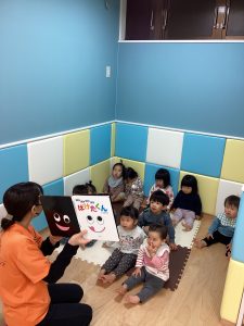 ばけたくんの絵本を読み合いしました。ちょっと長めの絵本も集中して見られるようになってきました。