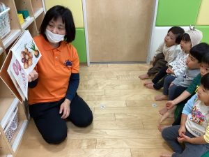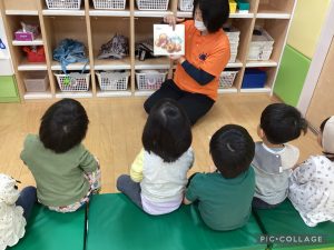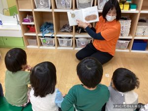 また、月刊絵本や季節の絵本などの読み合いの様子も紹介していきますね。最近では、「いろいろバス」という絵本がお気に入りです。また、次回の絵本ブログで紹介したいと思います。