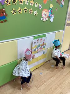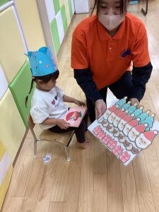 お誕生日のお友だちは『おたんじょうびおめでとう』のプレートを貼ってもらいました😊