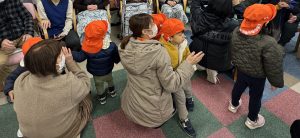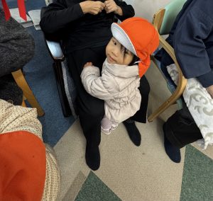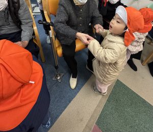 お芋掘りの時にお世話になったディサービスセンターほほえみプラスさんのところに行き、♪あわてんぼうのサンタクロース♪、♪おもちゃのチャチャチャ♪、♪キラキラぼし♪をみんなで歌いました。