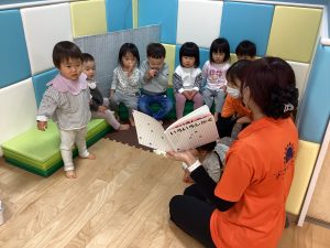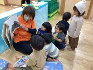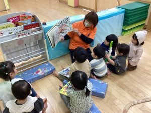 ももぐみさん、いちご組さんもとっても静かに絵本を見ることができるようになり、読み合いの時間を楽しんでいます。