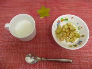 【1.2歳児食】エネルギー427kcal たんぱく質15.2g 脂質13.0g