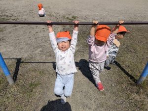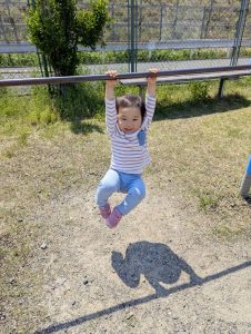 鉄棒にぶらーんとぶら下がれるよ✨すごいでしょ!