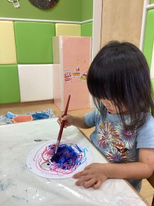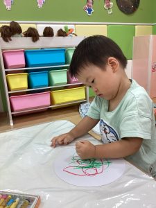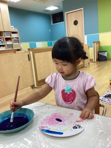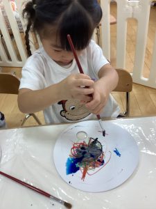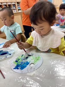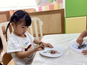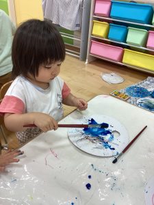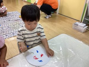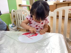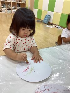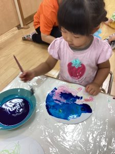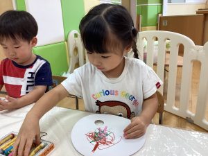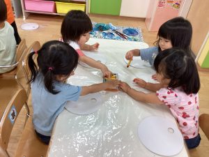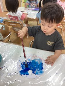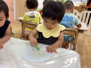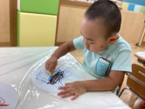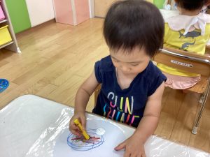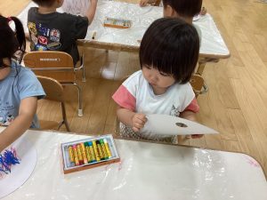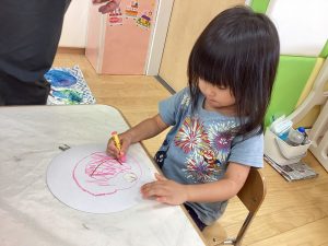 自分が描いたクレパスの絵がはじいてでてくると「わあ!」と声を上げる子もいました。