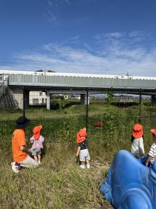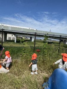 広い公園でかけっこをしたり、虫探しをしたり・・・個々にしたい遊びを見つけて楽しむ姿があります(*^_^*)