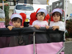 秋らしい風を感じたり車や飛行機を指さしながら楽しそうに先生達に教える姿がとても微笑ましかったです。
