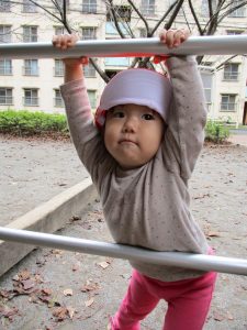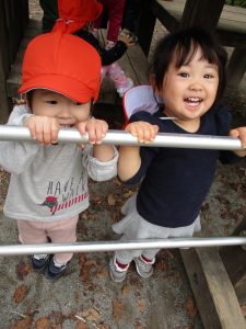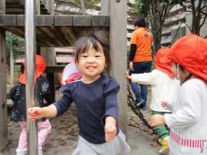 遊具を使ったり、広場で保育者と一緒に追いかけっこをして思い切り体を動かして遊びました。