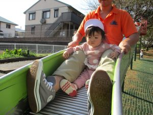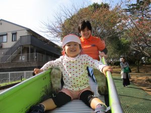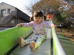 一緒にローラー滑り台を滑るのも子ども達のお気に入り。