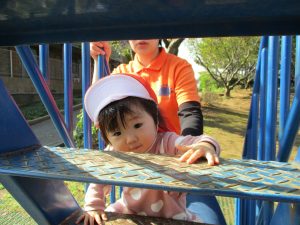 遊び方がダイナミックにつれて怪我の可能性も高くなりますが固定遊具で遊ぶ際は先生が必ずそばにつき目を離さないように徹底しております。