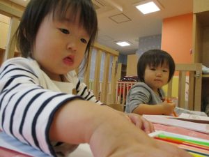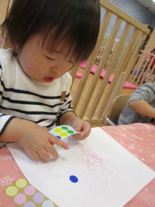 皆シールを剥がすのがとても上手で何度も何度も繰り返しシール貼りを楽しんでいました。