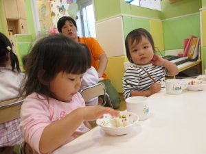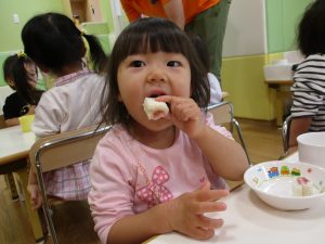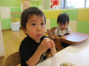 普段と違う形のおやつに大喜び!