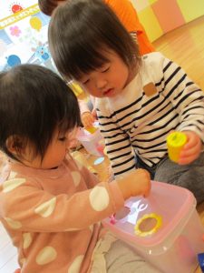 時には取り合いになってしまうこともありますが、玩具の量がしっかりと確保されているので皆が満足、納得いくまで遊びこめます。