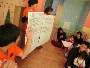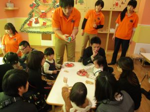 クリスマス会が進むにつれ少しずつ緊張もほぐれアットホームな雰囲気の中、全員参加型で皆の笑顔があふれていました。