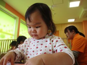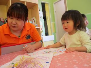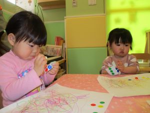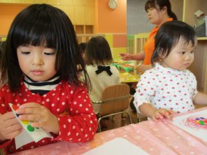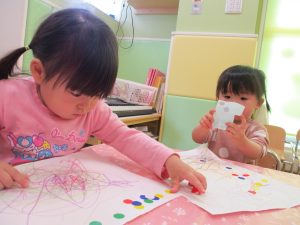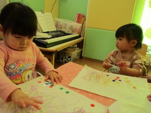 好きなキャラクターや動物など思い思いのお絵描きやシール貼りを楽しみました。![]()