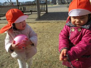 投げたり転がしたり追いかけたりたくさん体を動かしました。