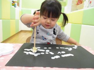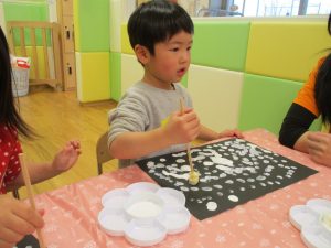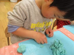 今週は比較的室内で過ごす日が多かったですが冬の製作や粘土遊びを楽しんだり、ボール、フラフープ、マット等で思い切り体を動かしたりと、充実した室内遊びを展開出来たかと思います。