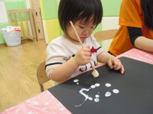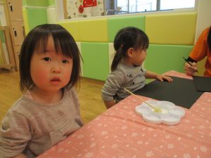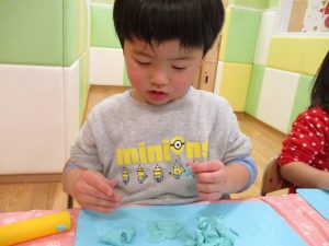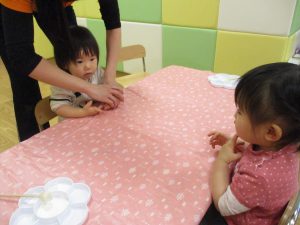 型抜きも保育者と一緒に楽しく行っておりました。