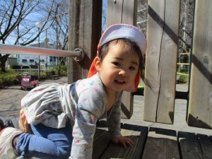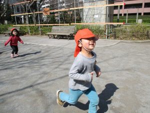遊具の使い方も上手になってきておりますが、最近は2歳児を中心に皆で行うおいかけっこがブームです。
