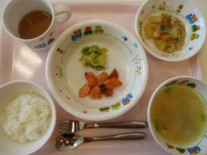 ご飯 味噌汁 鮭の照り焼き そぼろ煮 おかか和え
