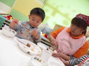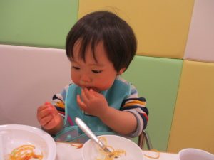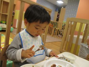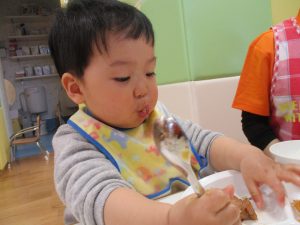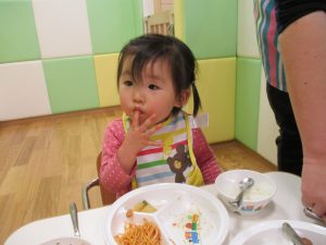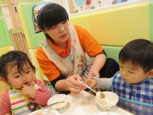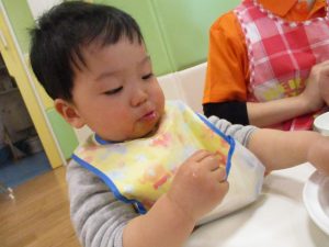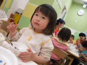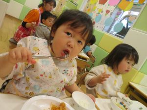 保育園の給食は出来立てホヤホヤなので新しいお友達もモリモリ食べてくれスタッフ一同嬉しく思います♪