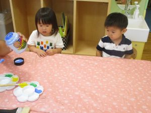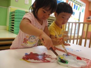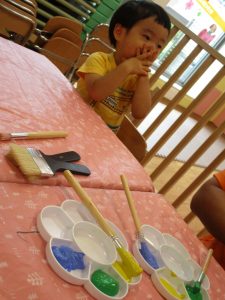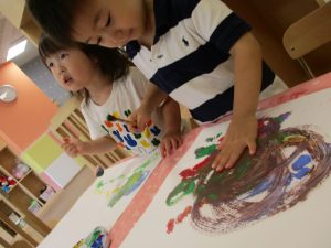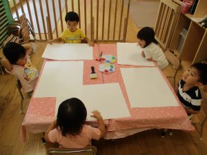 大きな紙に思い思いの「ご飯」を楽しそうに描いておりました。