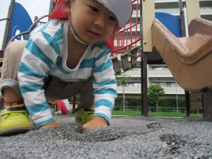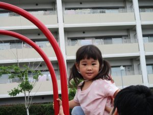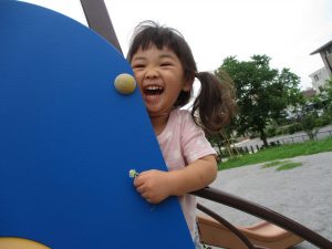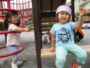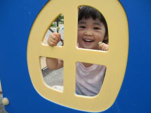 遊具の中からいないいないばぁ!がバッチリ決まっております。笑