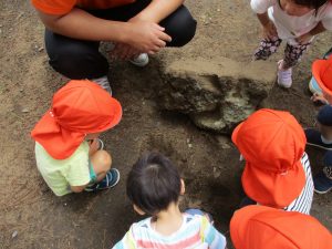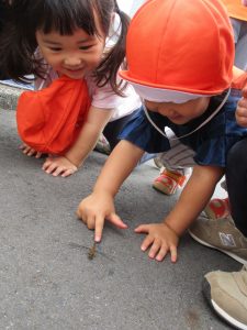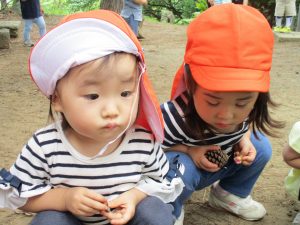 虫が苦手なお友達は「こわいー」と言いながらも棒でツンツンと触っておりました。笑