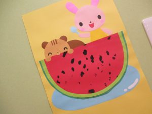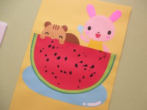 0歳児さんの指スタンプはスイカに大変身。