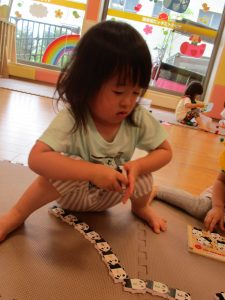 それでも手作り玩具で指先の感覚を養ったり、体につけたりして色々な遊び方で楽しく過ごしております。