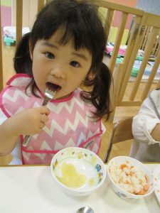 食べ方も食器の使い方もだんだん上手になってきました♪