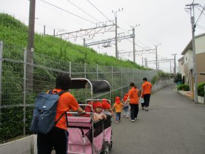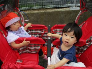 駅までは少し距離がありますが皆が暑さに負けず「歩きたい」アピールが凄く、順番でカートから降りては元気に歩いております。