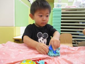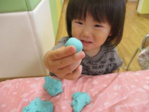 思い思いの形を作ったり「ギュー」と感触を楽しんでおりました!