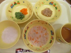 離乳食中期 離乳食後期 ご飯 ポークカレーシチュー スティックサラダ バナナ