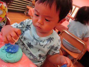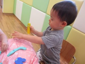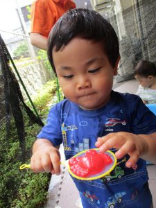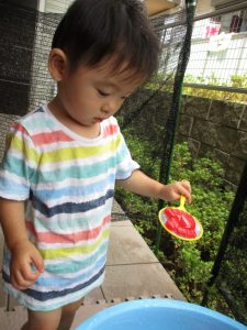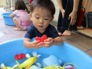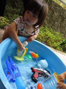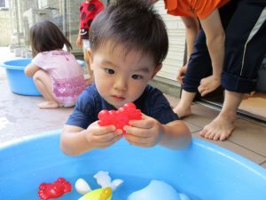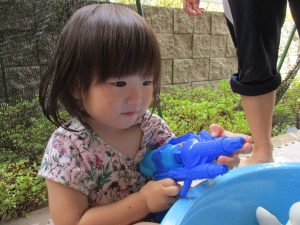 水遊び玩具も少しずつ増え、水鉄砲や魚や貝殻の玩具が新しく仲間入りしました。