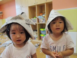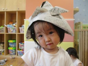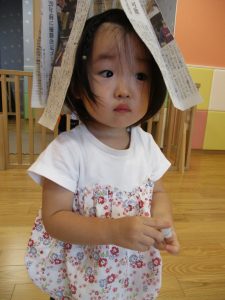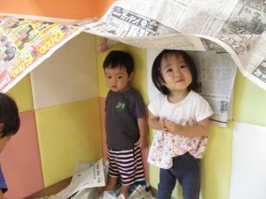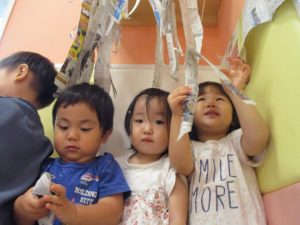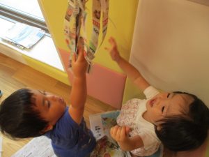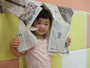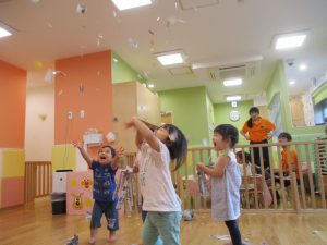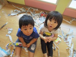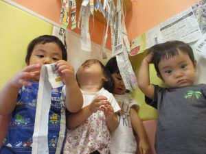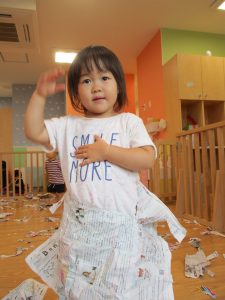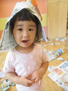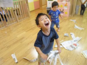 新聞紙遊びが大人気で最後は季節外れの桜が舞い散りました!笑
