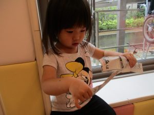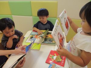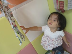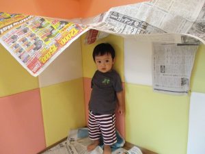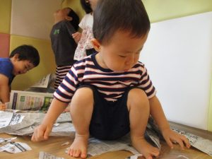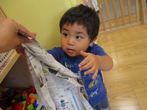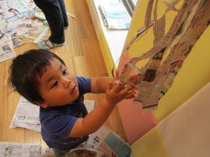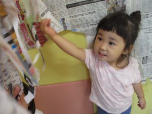 この日は新聞紙遊び、塗り絵、絵本コーナーを楽しみました♪