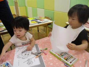 0歳児クラスも塗り絵デビュー致しました!笑