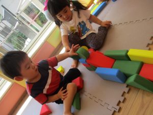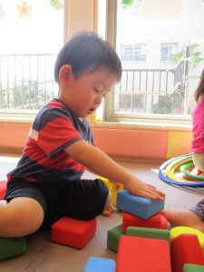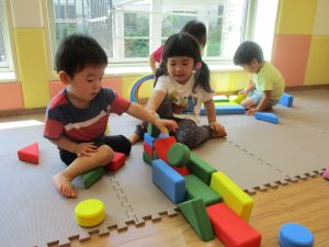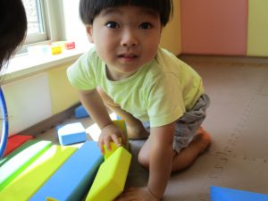 久しぶりにソフト積み木やフラフープで遊びました♪